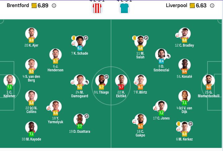 布伦特福德首发:1-凯莱赫、20-阿耶尔、4-范登贝尔赫、22-科林斯、33-卡约德、6-亨德森、18-亚尔莫柳克(28’27-雅内特)、24-达姆斯高(79’8-延森)、7-沙德(79’23-刘易斯·波特)、19-瓦塔拉、9-伊戈尔·蒂亚戈。